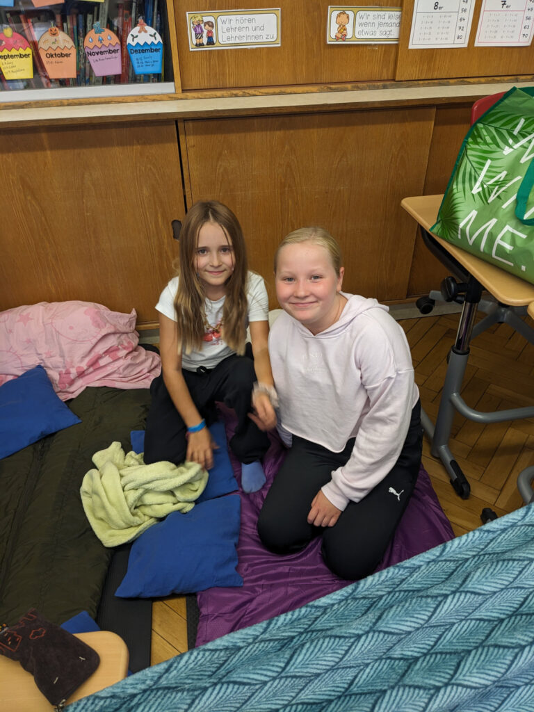 Natürlich war an Schlaf in dieser besonderen Nacht kaum zu denken – doch trotz kurzer Nachtruhe waren sich am nächsten Morgen alle einig: Diese Schulübernachtung war ein wunderschönes Erlebnis, das noch lange in Erinnerung bleiben wird.
